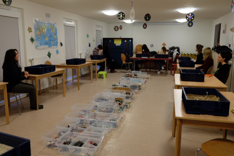 Terapia della sabbia per bambini yazidi a Stoccarda.