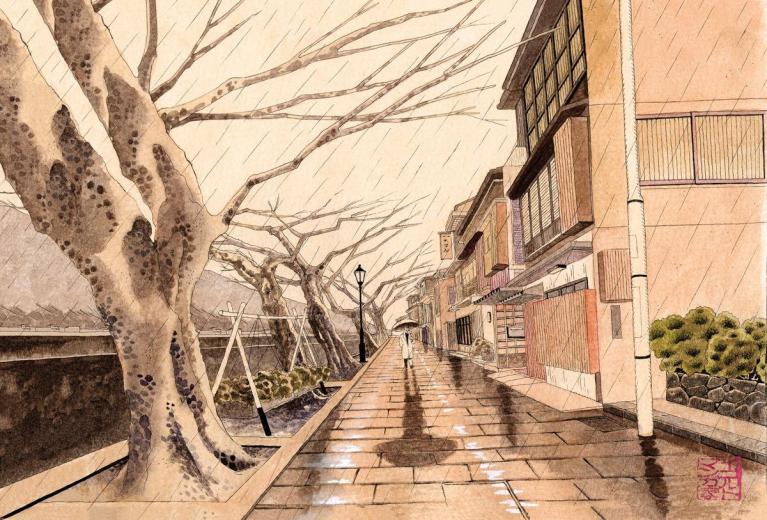 L’altro “spirito guida” del libro insieme a Basho è certamente il Maestro Jiro Taniguchi, recentemente scomparso, un artista unico nonché un tuo grande amico. Un altro fumettista che ha fatto del lavoro sul passato e sull’istante il fulcro della propria opera.