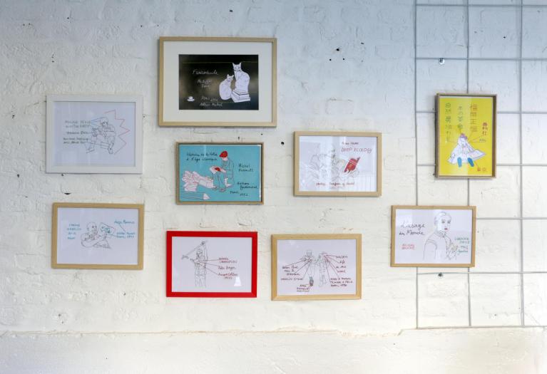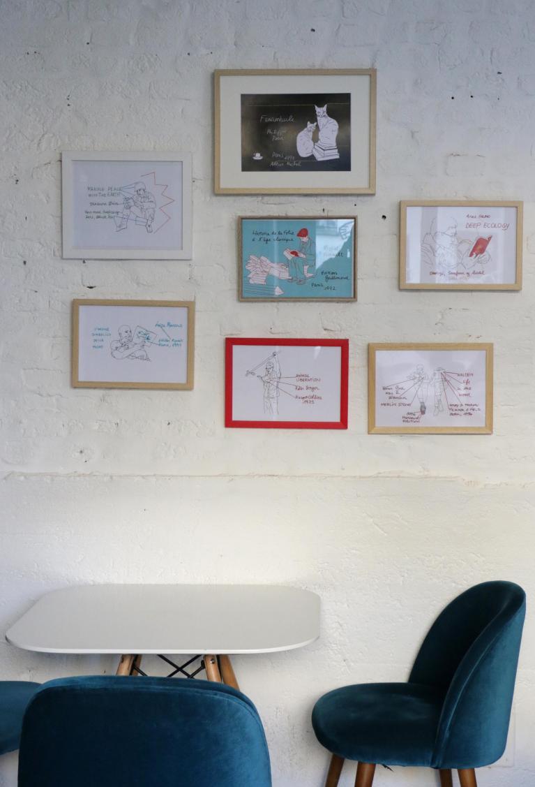 Il Walden Cafè è un luogo accogliente e inondato di luce, un caffè letterario con una selezione di testi molto interessante e una cucina quasi esclusivamente vegana. Coquelicot mi aspetta al bancone mentre chiacchera amichevolmente con Delis, che si occupa del bar e insieme gestisce anche la programmazione culturale del locale. Qui dal 30 gennaio (fino al 28 febbraio) sono in mostra alcuni suoi lavori pensati e realizzati a partire dal 2016, e ora esposti per la prima volta.