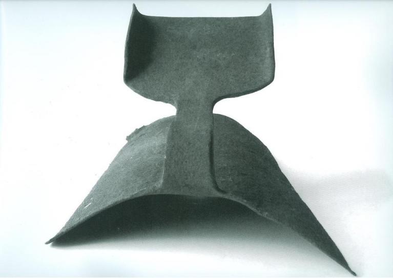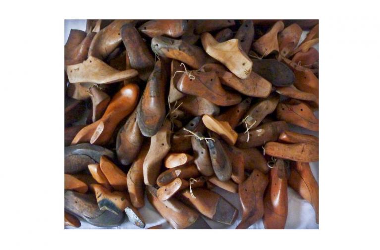 Le forme di legno per le scarpe prestate alle acrobazie di cui sopra, se ammassate (con criterio sottilissimo) in un luogo del pavimento e se chiamate Shoah sono una trafittura immediata alla sensibilità dell’osservatore. Ma sono le stesse forme dell’aerea giravolta. Il cambiamento radicale sta in un’operazione di misteriosa alchimia che Corrado aveva in sé, pronta a scattare e a colpire con precisione. In ciò ritrovo anche una sua declinazione personale, ironica, ma fondativa, del suo essere, come era, un ingegnere meccanico.