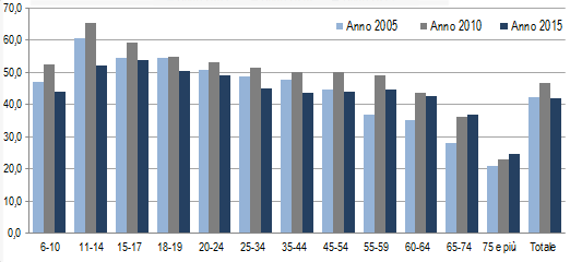 Come fonte, internet ha ormai superato i quotidiani e la radio, e tallona sempre più da vicino la televisione. Nel 2011 il 51% delle persone usava internet per informarsi, nel 2015 la quota era salita al 71%. Tra gli oltre 37 milioni di italiani che sono utenti attivi su internet, quasi 29 milioni vi accedono in mobilità. La tendenza pare inarrestabile. Internet è più diffusa tra i giovani che tra gli anziani: tra i 14 e i 29 anni il 92% usa internet, oltre l'85% usa lo smartphone, rispetto al 28% degli over 65. Oltre il 50% dei cellulari viene usato per stare sui social e per informarsi. (Fonte Osservatorio News Italia 2015)