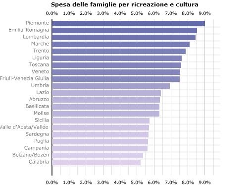 E qui cominciano le note dolenti. La situazione italiana sul fronte della cultura appare desolante, anche in rapporto agli altri paesi europei per quanto riguarda sia i consumi sia il sostegno pubblico. I dati Istat (rilevazione 13 gennaio 2016) dicono che il 9,1 per cento delle famiglie non ha nemmeno un libro in casa, il 64,4 per cento ne ha al massimo 100; al Sud meno di una persona su tre (28,8 per cento) ha letto almeno un libro nell'ultimo anno, mentre nelle Isole i lettori sono il 33,1 per cento. I lettori forti, cioè le persone che leggono in media almeno un libro al mese, sono solo il 13,7 per cento della popolazione, mentre quasi un lettore su due (45,5 per cento) si conferma lettore debole, avendo letto non più di tre libri in un anno.