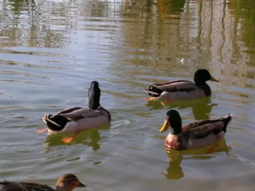 C’era questo assembramento di anatre vicino alla sponda milanese che si è formato in meno di due minuti, il tempo che mi ci vuole per percorrere il ponte. Un’anatra araldo si era messa a starnazzare a tutto gargarozzo e le altre sono accorse da ogni parte del fiume e canali collegati. Un’assemblea generale! Arrivavano spedite, in silenzio. Qualcuna bisbigliando con la vicina in modo piuttosto insolito. Non è gente che brilla per riservatezza.