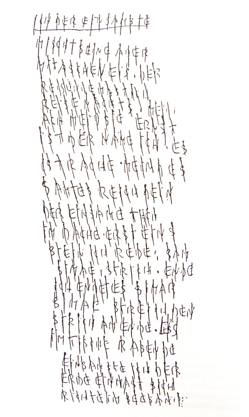 L’analisi condotta da Zuccarino non trascura i percorsi clinici e i dati biografici degli autori considerati. Nel caso di Walser (Penna e matita. Sui microgrammi di Walser), per esempio, il critico nota come il piano biografico e quello letterario siano strettamente correlati. Vi sono nell’opera di Walser riferimenti ai mestieri da lui svolti, mestieri nei quali la penna riveste un ruolo decisivo. Tra i più insoliti, l’impiego in una copisteria per disoccupati, luogo che lo scrittore svizzero fa descrivere da una creatura della sua immaginazione: Simon Tanner. Al pari del suo personaggio, Walser avvertiva il lavoro d’ufficio come tendenzialmente incompatibile con la propria vocazione di poeta e narratore, trovando conforto soltanto nel comporre, in un’elegante calligrafia, poesie su strette strisce di carta. Ma questo quadro, in cui la penna recita il ruolo di protagonista, è stato modificato dalla scoperta, nel lascito testamentario dello scrittore, di 526 fogli disparati contenenti «brevi prose, scene dialogate, poesie e persino un intero romanzo». Su quei fogli Walser ha tracciato col lapis, in una grafia minutissima e in apparenza illeggibile, testi quasi del tutto privi di correzioni e cancellature. Il ricorso alla matita non è un dato insignificante: corrisponde, al contrario, al tentativo di aggirare ‒ con la possibilità di accedere a una dimensione più calma, quasi onirica ‒ il blocco psicologico provocato, a un certo punto dell’esistenza dello scrittore svizzero, dall’uso della penna. Alla dimensione labile e provvisoria, quei fogli associano un altro tratto essenziale: la micrografia. Essa trasforma i foglietti in testi segreti e soprattutto, verrebbe da aggiungere, in segnali che alludono al destino di Walser, in bilico tra il silenzio e l’esile traccia della scrittura.