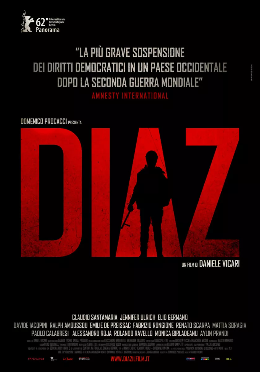 Quando un film si propone come rielaborazione di fatti storici che, per quanto attutiti dalle intermittenze della memoria mediatica, bruciano ancora nel presente, entra di peso nel discorso pubblico, con tutto il peso specifico di quella macchina di finzione e persuasione che è il cinema e, dunque, con le relative responsabilità. Soddisfare insieme le esigenze di un’analisi storica rigorosa e la funzione di sintesi memoriale che gli è più o meno esplicitamente attribuita non è compito facile, anche perché, quando si interrogano le responsabilità del cosiddetto cinema civile, si tende spesso a chiedere troppo o troppo poco. Se andiamo a guardare alcuni commenti comparsi all’uscita di Diaz, ritroviamo questa oscillazione fra chi rimprovera al film approssimazioni e reticenze sospette, rispetto al proposito di attenersi agli atti dell’inchiesta, e chi lo celebra convinto che le sue immagini forti e necessarie possano colmare quello che per dieci anni è rimasto un opprimente fuori-campo della memoria e auspicando che questa visibilità possa “sanare una ferita”.