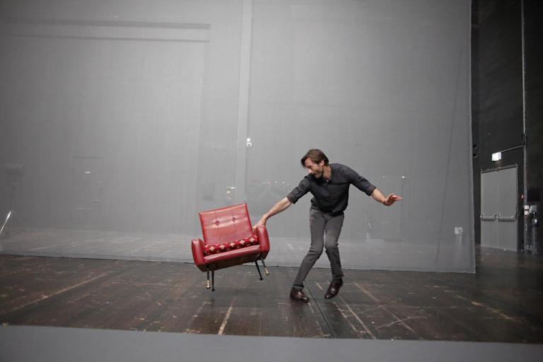 In scena, di qua dalla membrana, con la poltrona rossa, isola, rifugio, luogo della introspezione e della memoria, ci sono solo un vecchio comò, che sarà rovistato, poi grattato come per scorticare il proprio malessere, che si riempirà alla fine di oggetti e di foto, e un armadio un po’ sfasciato, che attraverserà la scena, rimembranza delle vecchie cose da abbandonare del Giardino dei ciliegi, luogo per rintanarsi dal peso dei ricordi e della solitudine.