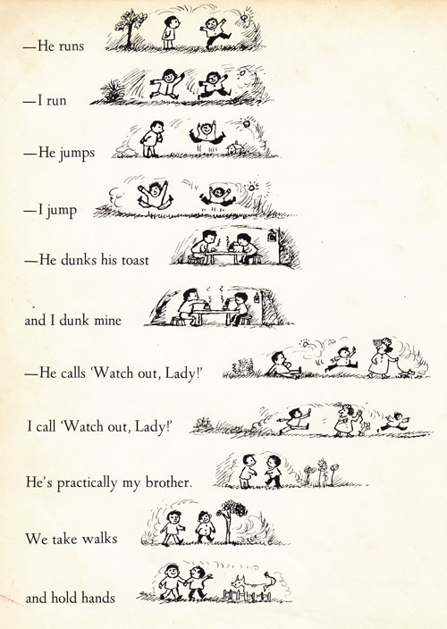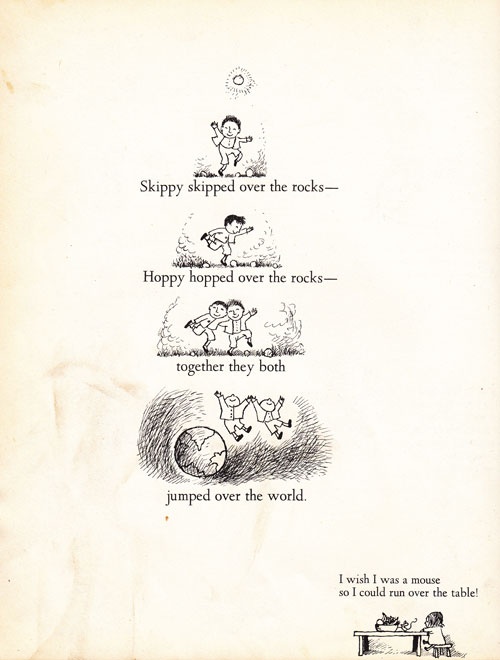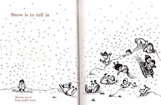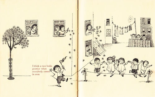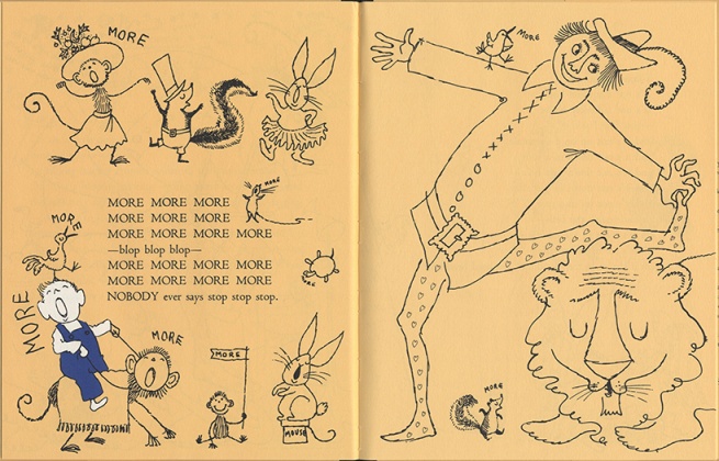Ma non rimane spazio. Allora solo questo: grazie Ruth Krauss per avere immaginato i bambini più bambini della storia della letteratura per l'infanzia, e per avere ispirato e portato alla luce il più grande disegnatore di bambini della storia dell'illustrazione.