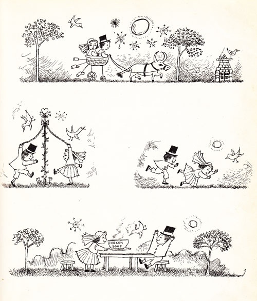 Sendak amò immediatamente quel testo che trovò congeniale al suo spirito. E sebbene si fosse presentato all'incontro con Krauss molto nervoso, fra i due nacque subito un'intesa profonda, e una simpatia vivissima che si trasformò rapidamente in una grande amicizia. Da questo sodalizio umano e professionale nacquero libri che sono autentici capolavori (e che io ho conosciuto solo due anni fa a New York grazie a Sergio Ruzzier).