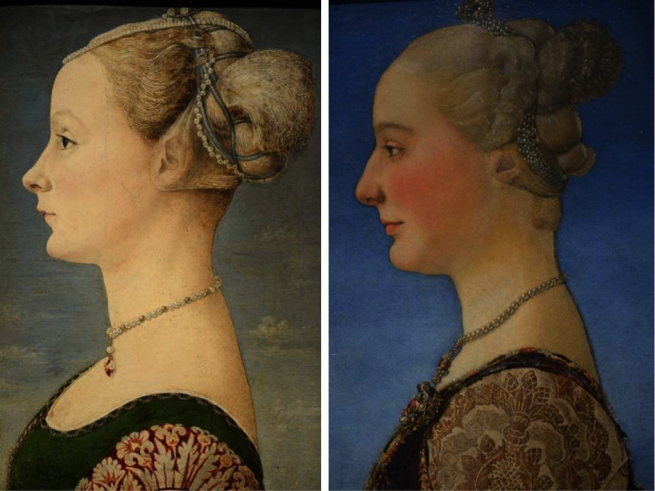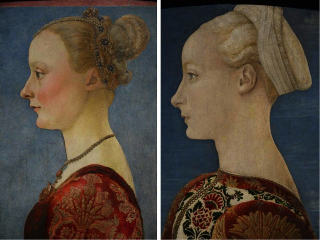 Da sinistra: Piero del Pollaiolo, Ritratto di donna di profilo (New York, The Metropolitan Museum of Art, Bequest of Edward Harkness, 1940); Piero del Pollaiolo, Ritratto di donna di profilo (Berlino, Staatliche Museen, Preußischer Kulturbesitz, Gemäldegalerie)