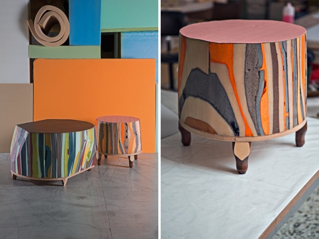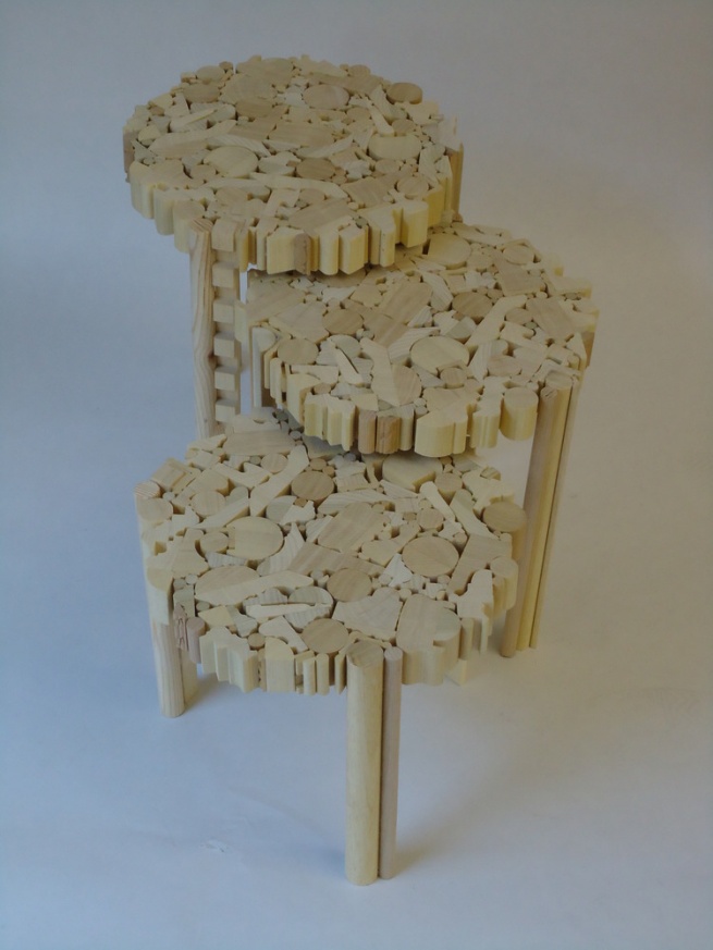 Allora è sulla caratura, sul calibro dei residui di altre e più nobili lavorazioni – quelle dove si esercita il controllo preciso sulla forma, cavata con le frese cnc dal blocco unitario di pietra, legno, gommapiuma, secondo un vincolante e preordinato disegno – che insiste il lavoro del designer: lavoro di attenzione sottile e attiva per quello che resta a lato, per la preziosità e il valore di briciole ancora buone. E anche: umile lavoro che si misura dentro la pratica sperimentale – abbastanza libera e incerta – del tentativo in proprio, dell’autoproduzione in cui ritrova lo spazio per una ricerca ai margini; dove afferma i momenti di una operazione di progetto che si conduce sul filo del tempo. Come processo, e pratica, prima che disegno della cosa conclusa. Come serie di gesti e modi molto concreti del fare (con) le cose, che scandisce il tempo in sequenze e fraseggi, nelle fasi successive di una ricetta irreversibile – ciascuna tappa corrispondendo a uno stadio, a un livello o soglia da compiere: come avviene per la cottura al forno dell’impasto di torte (e di ceramiche); come nelle alchimie della lievitazione. E, compiuta quella, sul prodotto si può tornare a lavorare passando ad altre diverse trasformazioni – di taglio, di ritaglio, di finitura – ma mai tornare indietro, mai deflettere il percorso né pentirsi del risultato parziale.