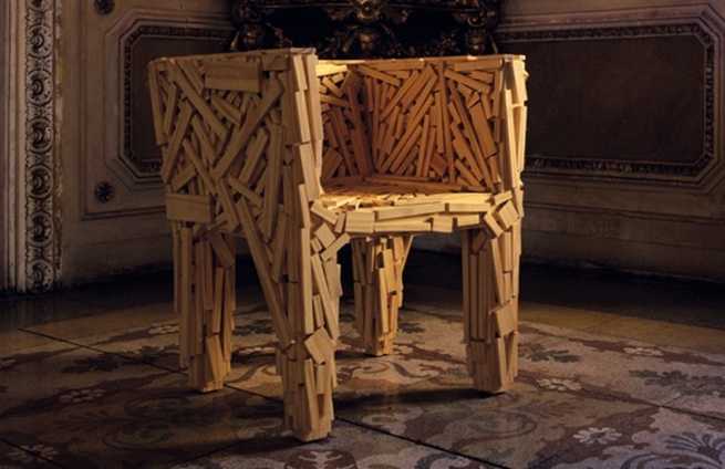 Altrimenti il gioco suona falso: ed è quello del falso frammento, o del rifiuto perseguito, procurato di proposito a dispregio di ogni economia (domestica o planetaria). Altrimenti sul ricordo dei gesti premurosi e parchi delle massaie – e di un’umanità che cerca nelle briciole la ricetta ingegnosa della sopravvivenza – si impalca il mito di una povertà sapiente, da degustare però solo dall’alto del potere d’acquisto. E la favela di cui si mima la necessità, la virtù, si mitizza nella forma ideale – idolatrica – di una poltroncina composta a mano, pezzo su pezzo: di un oggetto costruito e ricostruito inseguendo il fantasma di un’idea-forma perentoria e assente, incollando uno alla volta e tutti insieme i falsi frammenti di pino levigato e preziosissimo teak – per farsi vanto del tempo speso dalle povere vite artigiane, in premio del prezzo che si può esigere o pagare.
