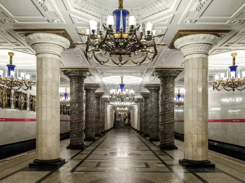 Le scale mobili, a Pietroburgo, sembrano portare al centro della Terra, inoltrarsi dritte come la prospettiva Nevskij verso il basso, illuminate dai lampioni degli anni Cinquanta di gusto decò-poststaliniano, alternati, sin dagli anni Novanta, dai cartelli delle pubblicità. A réclame di ottici e supermercati si susseguono ritratti di Aleksandr Puškin, con i versi del suo Cavaliere di Bronzo dedicati a una Pietroburgo maestosamente apocalittica: T’amo, creatura di Pietro/Amo il tuo grave e armonioso aspetto.