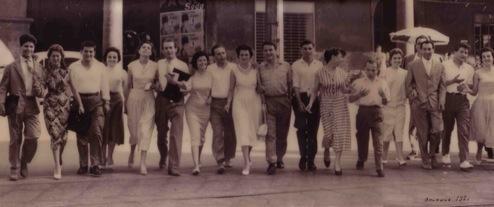 C’è insomma la retorica del partito che avanza senza esitare, come del resto nella sfilata reggiana del ‘47, ma c’è in più la ricerca di un’atmosfera gioiosa, quasi a controbilanciare l’eco plumbea dei recenti avvenimenti d’Ungheria. Alcuni si prendono per mano, tre coppie procedono prendendosi a braccetto. E quasi tutti sorridono apertamente. Abbigliamento alla moda, atteggiamenti disinvolti, sguardi per niente intimiditi. Come se il rigore degli anni precedenti si fosse ormai del tutto allentato.
