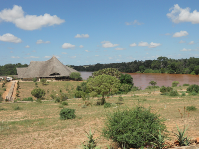 MEET ME DOWN BY THE RIVER. Il tempo rivierasco trascorre a suo tempo, con lo stesso incedere degli ungulati che si abbeverano al fiume. I quattro masai, tutti sposati come deduco dal fatto che non hanno i capelli lunghi, mi dicono che gli ippopotami dovrebbero sorgere dalle acque del fiume “verso le 11”. Sono le 10:30, anche se qui è notte fonda da un pezzo e sono provato dalla giornata. Ci adagiamo, chi sul tavolo, chi sui canapè, chi a terra. I masai sono discreti, mantengono lo stesso riserbo del ranger che nessuno sa dove dorme e me lo vedo dentro la jeep, col cappello sugli occhi e le gambe di fuori. Restiamo assorti. Se ci fosse una chitarra, vorrei improvvisare un blues dal fraseggio irregolare alla John Lee Hooker. Cantare del fiume rosso, come rossa è la terra e ormai i miei vestiti, e lo shuka dei masai, una veste che li rende simili a monaci tibetani. Cantare degli alberi rinsecchiti, in cui non vi è sagoma che non ricordi un animale. Cantare il safari come un lento, progressivo, viscido abbandonarsi al divenire animale del mondo.