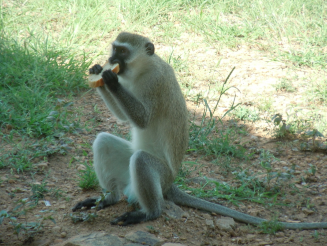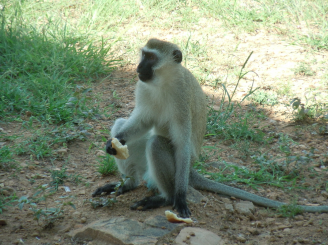 JAMBO. La notte avanza e ogni tanto mi sgranchisco le gambe attorno al capanno retrostante dove si consumano i pasti. Un vegetariano sopravvive bene nella savana: oltre alla frutta, riso e patate, fagioli e mais, zuppe di lenticchie, chapati e verdure, ugali (polenta di mais) con l’erbetta sukuma, samosa, spuntini di mandazi (ciambelle dolci). Pasti che divido, per così dire, con una scimmietta – alias un cercopiteco verde – permalosa e irresistibilmente dispettosa, più perspicace di tanti umani che conosco. A Jambo (come l’ho soprannominata con la parola che i turisti si sentono indirizzare più frequentemente in Kenya) bastano tre balzi studiati per razziare quello che c’è nei piatti. Poi si siede a pochi metri dal tavolo e mangia il bottino senza sensi di colpa. Da Jambo apprendo tra l’altro ad aprire le banane dall’altro lato. Se avessi più tempo, potrebbe essere quello che l’antilope Lulu è stata per Karen Blixen. Riconoscendo tra noi una curiosa rassomiglianza di tratti, mi convinco di essere compreso da questo silente compagno di merende. Di cosa Jambo è il nome?