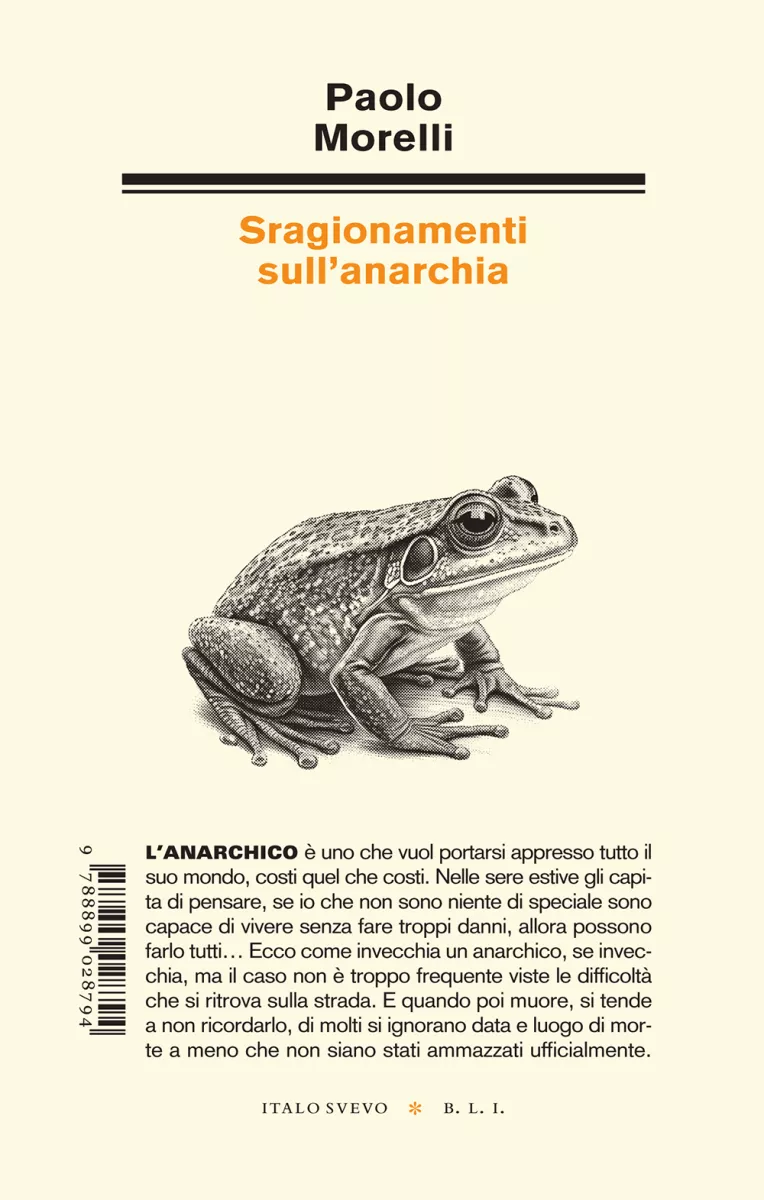Ecco, il libro – impolitico ma in una accezione sottilmente politica – di Morelli si inserisce pienamente in questa ultima costellazione: si impegna a "occupare" idealmente non solo Wall Street, ma ogni zona delle nostre relazioni quotidiane, del nostro immaginario, decostruendo logiche di potere, giochi di ruolo, tic mentali. Dalle sue pagine possiamo estrarre un identikit dell'anarchico: non considera la natura nemica, ama anche ciò che non comprende, dispone di una intelligenza non finalizzata al dominio, non si sente braccato dalla paura di tutto, accetta la impermanenza come percezione quotidiana della realtà, non si prende troppo sul serio, lascia che il pensiero scorra (e anche che possa non esserci), pensa che per preparare la rivoluzione bisogna esserne degni, non è in grado di esercitare "qualsivoglia traffico d'influenze dà fastidio a tutti, tranne che agli altri come lui", dunque a monarchi, fascisti e comunisti (ahi il commissario Togliatti a Barcellona nel '37!), si lascia guidare dal corpo, è addestrato a una respirazione "lunga e sottile", dà valore a qualcuno per il suo valore e non per il potere che incarna o per il suo successo, sbaglia tanto perché prende tutto alla lettera e non è furbo. Soprattutto: "per il fatto che rifiuta qualsiasi autorità deputata è nelle condizioni favorevoli per riconoscere l'autorevolezza ovunque si nasconda, una voce stenta da bar, il colore mesto di un fiore, il gesto o l'ammicco di un cane pastore, l'insegnamento di un nemico perfino può rivelarsi utile…" (si sa, l'autorevolezza non è legata a uno status). A ben vedere questo anarchico sembra una figura del cosiddetto stoicismo universale di Pierre Hadot: dunque un modo di stare al mondo, un'arte di vivere che si accorda con il ritmo (e logos) del cosmo... L'ultimo capitolo, "Sconfessione" contiene un palpitante frammento autobiografico in cui scopriamo l'humus da cui nasce l'intero sragionamento.