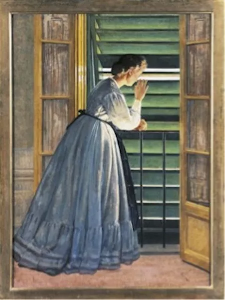 Ma nel quadro di Silvestro Lega vi è qualcosa in più. La donna sbircia dalla persiana perché vuole vedere ma non intende essere vista, desidera osservare ma non essere osservata. Si nasconde. Se si affacciasse, si mostrerebbe e mostrandosi sarebbe costretta a entrare in una relazione di reciprocità degli sguardi. Le donne di Aristofane si affacciano per mostrarsi, ma appunto lo devono fare per lavoro e per mestiere. La donna di Silvestro Lega nasconde la sua curiosità perché la curiosità ama nascondersi. Noi spettatori la cogliamo di nascosto mentre furtivamente allarga le stecche della persiana per guardare senza essere vista e soddisfare la sua curiosità.