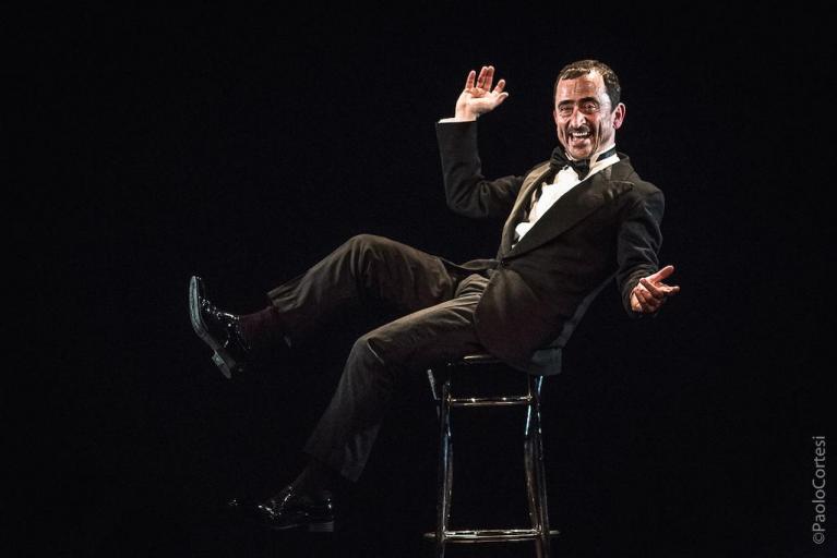 Con ll sadico del villaggio – presentato al Festival della Letteratura di Mantova in settembre e di recente al teatro delle Moline di Bologna; una produzione dell’associazione Liberty ideata da Elena Di Gioia per la stagione di Agorà, creata con lo sguardo esterno di Paolo Nori e con gli interventi sonori e luministici di Alessandro Amato – affronta l’opera di Marcello Marchesi (1912-1978). Questo campione dell’umorismo italiano dell’altro secolo, definito da Umberto Eco “il re delle battute fulminati e un genio del gioco di parole”, fu scrittore, sceneggiatore di riviste per Macario, di film per Totò, autore per Walter Chiari, Paolo Panelli e altri nomi popolari. Firmò trasmissioni televisive di successo che i più anziani di noi ricordano con nostalgia canaglia, quali Il signore di mezza età, L’amico del giaguaro e alcune edizioni di Canzonissima (1968 e 1972). Fu copywriter di vari famosi Caroselli, come quelli con Tino Scotti, che dopo infiniti qui pro quo verbali si chiudevano con lo slogan per pubblicizzare dei confetti lassativi: “Falqui: basta la parola!”; come quelli con Virna Lisi per un dentifricio: “Con quel sorriso può dire ciò che vuole!”.
