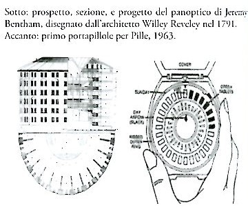 «Dispositivo leggero, portatile, individualizzato e amichevole, la Pillola permette di modificare il comportamento, temporalizzare l’azione, regolare l’attività sessuale, controllare la crescita della popolazione e modellare l’apparenza sessuale (rifemminilizzandola sinteticamente) dei corpi che se lo autosomministrano. La torre di sorveglianza è stata sostituita ora dagli occhi della docile consumatrice, che senza bisogno di uno sguardo esterno, regola la sua propria assunzione seguendo il calendario del dispenser circolare o rettangolare. […] La cella è ormai il corpo stesso della consumatrice che si vede biochimicamente modificato dal composto ormonale senza che, una volta ingerito, se ne possano determinare gli effetti esatti né la provenienza. Le punizioni e i sermoni educativi si sono trasformati qui in ricompense e promesse di libertà ed emancipazione sessuale per la donna.»