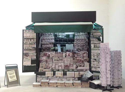 Sfogliando i giornali italiani sono rimasto colpito dalla Settimana Enigmistica. Ho capito che per me la Settimana Enigmistica è il giornale che più di ogni altro rappresenta l'Italia. Mi piace moltissimo: è una pubblicazione indipendente, senza pubblicità, con i rebus e tutta una serie di giochi ed enigmi con le immagini che non esistono nelle riviste di enigmistica in Spagna. Mi ha sempre colpito che negli aeroporti in giro per il mondo trovi sempre la Settimana Enigmistica. Mi piace molto anche il nome e il fatto che si riferisce a un'attività che fa bene al cervello. A Venezia sono stato ispirato da un'edicola in via Garibaldi e ho comprato tutti i giornali e le riviste dell'edicola in un unico giorno, scelto a caso. Per prima cosa ho cambiato il font e la tipografia di tutti i giornali e l'ho sostituita con un font molto simile a quello della Settimana Enigmistica, realizzato con l'aiuto di un designer che si occupa di tipografia. Ho inserito anche altri elementi grafici, per creare un'eco continua della Settimana Enigmistica in tutti i giornali. A quel punto ho messo i balloon. Tutti i testi sono ripresi dai giornali originali. Ho usato frasi che ho selezionato senza creare alcun nuovo testo. È venuta fuori un'unica rivista che contiene soltanto copertine; per me lavorare sulle copertine significa lavorare sull'essenza dell'informazione, che è semplice pelle. Le copertine nell'edicola creano una specie di pelle dell'informazione ma alla fine è tutto lì: l'informazione è semplice pelle.