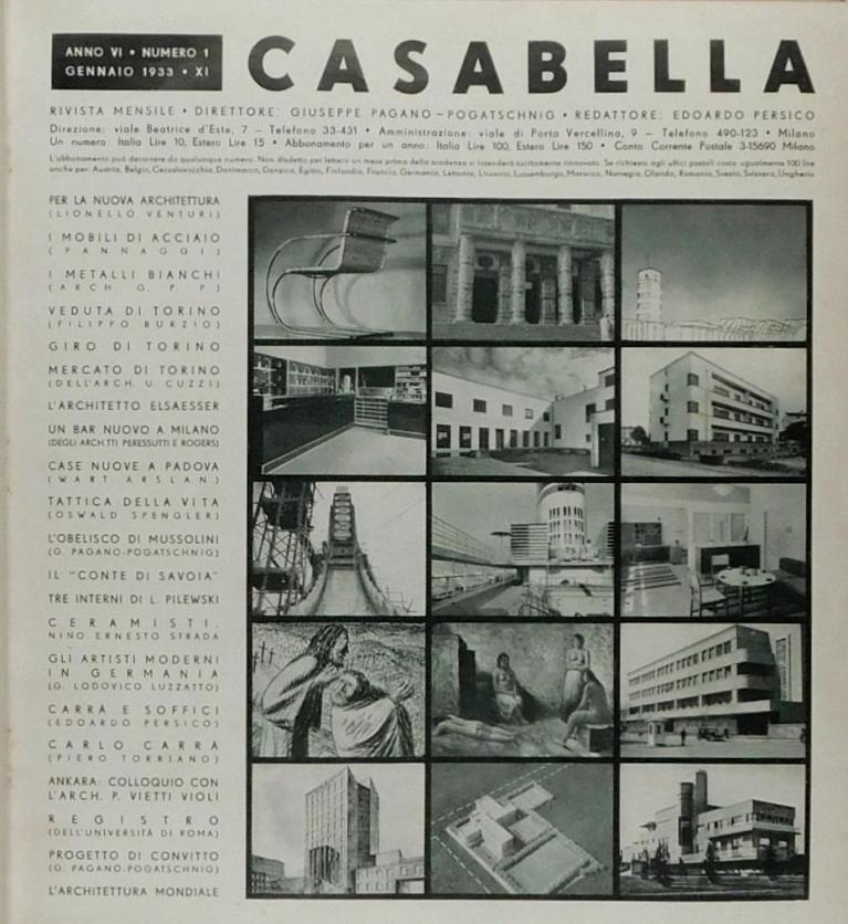Dopo il trasferimento a Milano Persico sarà ormai affermato: scriverà su Belvedere, rivista pubblicata da Pietro Maria Bardi, proprietario della galleria omonima e apertamente fascista, nella quale organizzerà mostre con il progetto 'di ricondurre gli italiani a una comprensione viva degli interessi spirituali', e inizierà la sua collaborazione a La Casa Bella (che dall'inizio del 1933 si chiamerà Casabella), divenendone condirettore accanto a Giuseppe Pagano ed estendendo progressivamente i suoi interessi verso l'architettura, il design e l'arredo, sempre sostenendo che 'la decadenza dell'arte italiana è legata alla mancanza di un'intima coscienza religiosa degli artisti: cioè alla mancanza della fiducia di compiere una funzione produttiva nel mondo moderno... Rigorosamente, un'estetica italiana può trovare soltanto nella dottrina cattolica la liberazione dalle ideologie straniere e rappresentare la realtà di un paese capace di sottomettersi alla vita della nazione' (1930).