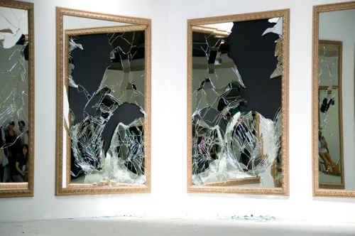 Qualche mese prima dell'inaugurazione della mostra egosuperegoalterego il Macro, il museo che la ospita fino all'8 maggio 2016, promosse la campagna #macroego, invitando il pubblico a inviare i propri autoscatti per vederli esposti assieme alle altre opere. Le prime cento immagini avrebbero formato la copertina del catalogo della mostra, una raccolta di interventi critici dedicati allo sguardo degli artisti sull'identità propria e altrui. Il dato surreale è che quest'immagine nata per celebrare il tema della visione autoriflessa risulta nei fatti anonima: lo sguardo non riesce a concentrarsi su un volto né a trattenere più di una rapida impressione, rimbalza da una faccia all'altra cogliendo solo i lineamenti umani più riconoscibili – occhi, naso, bocca – senza comprendere molto altro. Nella mostra un'installazione di Mariana Ferratto, Allo specchio, riproduce l'osservarsi come dialogo privato in cui subentra sempre la visione di qualcun altro. Le donne che sembrano specchiarsi rivelano quella sottile mimica che nasconde la ricerca di una conferma: la garanzia che ciò che vediamo sia aderente a un'immagine inconsciamente interiorizzata che soddisfa i canoni estetici pretesi dalla realtà in cui dobbiamo esporci. Lo specchio di Mariana Ferratto è però duplice, poiché l'illusoria superficie che rimanda alle donne il loro riflesso è lì invece per mostrarlo agli spettatori.