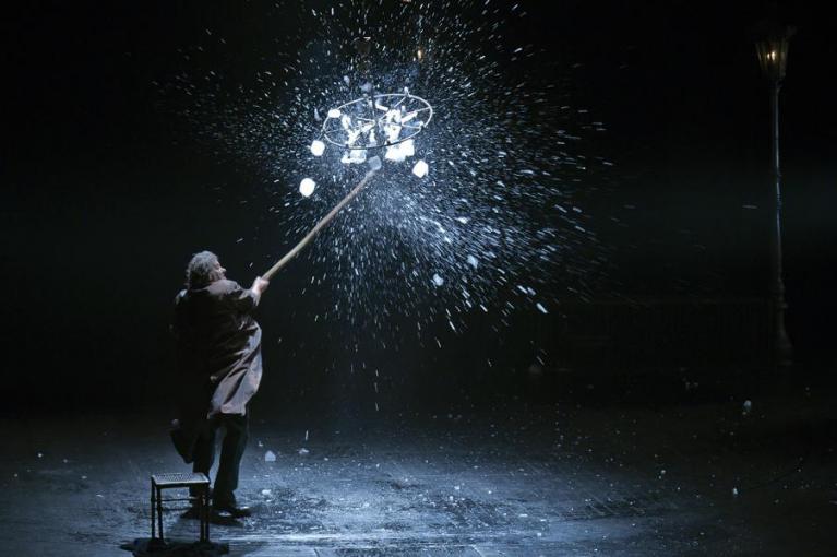 Ghiaccio e fuoco, pietre e legno, acqua e aria, elementi. Il teatro di Nekrosius nella fase della trilogia shakespeariana diventa lavoro a definire gli esseri umani, le loro paure, le loro debolezze, le loro ambizioni, i loro immani errori in un mondo arcaico e pesante o leggero di cose, di materie. Lo spazio è svuotato da orpelli scenografici, i testi sono essenzializzati, ridotti alle situazioni emblematiche, e su quelle il regista, con i suoi attori della compagnia Meno Fortas lavora, estraendo, amplificando, distillando simboli.