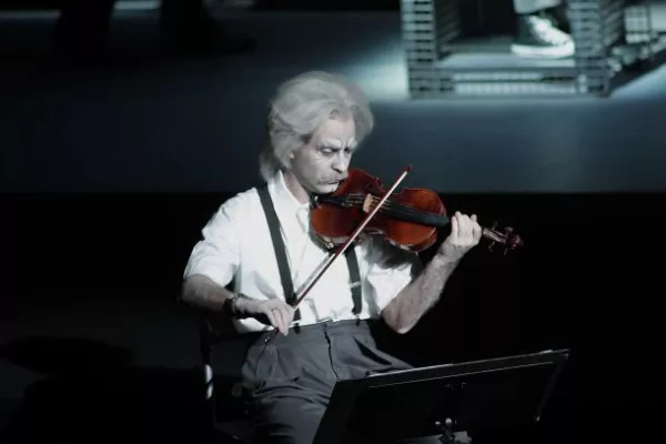 “In uno dei nostri primi incontri – dichiara il compositore Philip Glass – Bob mi disse che gli piaceva l’idea di Einstein perché tutti sapevano chi era. In un certo senso non c’era bisogno di raccontarne la storia, perché chiunque fosse venuto a vedere il nostro Einstein si sarebbe portato dietro, a teatro, la ‘sua’ storia del personaggio”. Con un giochino retorico, si può girare quest’idea, a guardare direttamente in faccia Einstein on the Beach di Glass e Robert Wilson: ognuno ci arriva con la sua storia – non tanto o non solo nei confronti del celebre scienziato della relatività, ma anche sui due artisti che hanno creato l’opera nel ‘76 e l’hanno rieditata nel 2012 (in Italia si è vista al Teatro Valli di Reggio Emilia).