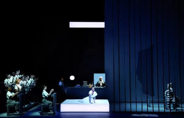 Quasi cinque ore di rappresentazione per uno spettacolo che a suo tempo ha rivoluzionato l’opera (quando non il teatro e l’intera cultura), con la frammentazione della narrazione e il rifiuto della dimensione interpretativa, l’introduzione nella lirica della modern dance e della musica minimal. Portato in scena da più di trenta attori, cantanti, danzatori e musicisti di eccezionale precisione ed efficacia, Einstein on the Beach si costituisce di cinque intermezzi – i famosi knee plays wilsoniani, momenti di giuntura tutt’altro che secondari – e quattro atti: in tutto nove scene fondate su tre immagini (il Treno, il Tribunale e il Campo-astronave), coinvolte in un processo che sembra andare dal mimetismo all’astrazione. È il celebre caso, a esempio, del Processo, in cui alla prima scena piuttosto “regolare” – si fa per dire: la corte si riunisce in aula, davanti a un letto gigantesco – fa seguito una scarnificazione progressiva che giunge infine a un’unica, schiacciante, riga al neon orizzontale. Ovunque si trovano frammenti che richiamano con decisione l’immaginario coevo: legati al culto di Einstein, allora quasi una superstar della cultura americana, ma, nei sorprendenti testi dell’allora quattordicenne Christopher Knowles, anche riferiti a gruppi musicali come i Beatles o a eclatanti casi di cronaca. Si può aggiungere, per farla breve, che l’impegno degli straordinari cantanti si risolve nella ripetizione di sillabe in solfeggio e che le poche parole recitate sono per la maggior parte inudibili. Come mettere ordine in tutto questo?