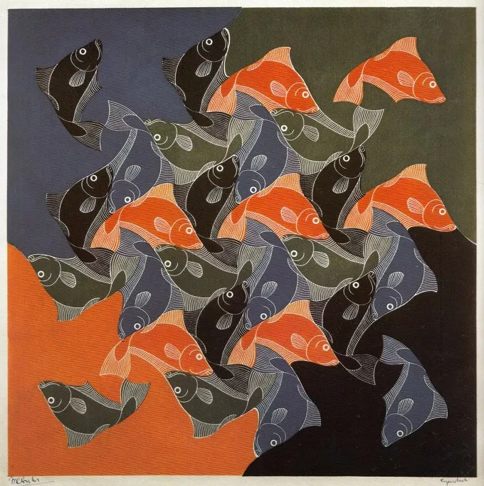 Escher, nonostante tutta la sorprendente precisione matematica delle sue stampe, aveva combattuto con la matematica da giovane studente alla Scuola di ingegneria civile e arti decorative di Haarlem. Fu solo quando ascoltò le Variazioni Goldberg di Bach che la sua mente riconobbe il break-down del proprio dono: dare significato attraverso la forma. "Padre Bach", lo chiamò. Colpito dalla meraviglia della musica di Bach, dalle sue figure matematiche e dai motivi che si ripetono circolarmente, dalla maestosità di “un ritmo avvincente, una cadenza, alla ricerca di una certa interminabilità”, Escher sentiva in essa una coinvolgente affinità tra il canone nella musica polifonica e la divisione regolare di un piano in figure e forme identiche.