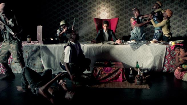Kudzanai Chiurai: Il regno in cui si trova il mio lavoro è il Purgatorio. Quando ho iniziato a ragionare sul video, ho voluto inquadrare il conflitto politico all'interno della religione e il riferimento canonizzato migliore era L'ultima cena. Avevo bisogno di un punto di partenza dal quale ho potuto costruire una narrazione che potesse esprimere questo: alla fine del 1990, Nelson Mandela ha ospitato una cena di beneficenza alla presenza di Charles Taylor, che fu poi processato per violazioni dei diritti umani, e Naomi Campbell, che ha anche testimoniato al processo di Charles Taylor. Questo è stato un perfetto esempio di uno spazio in cui santi e peccatori si sono riuniti e del conflitto tra etica e religione.