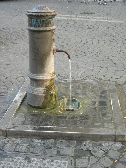 Piazza Madonna dei Monti, giù in fondo, a guardia della Suburra. Giulio “er coco” diceva che con l’acqua che sgorga dar nasone viene mejo a pajata. Acqua marcia, sì, acqua marcia c’è scritto sotto al cappello della fontanella che c’ha ‘no zampillo che è più arzillo der sorcio. Sprizza orgoglioso e prepotente che quanno lo catturi in bocca per vendetta te gela er canino, poi svicola e si imbuca nella strozza mentre il gozzo sussulta come un pischello arrapato. Mi sedevo sulla scalinata verso le sedici, quando la calura estiva principiava a smette’ de appiccicà. Stavo lì, a guardare er nasone mentre sputava il getto dritto dritto nel buco. Preciso, sicuro, sempre lo stesso, orgoglioso, eterno, come è eterna Roma. Sì, stavo seduto lì a non pensare e mi sentivo un papa con le orecchie colme dal botto dello scroscio che mi appagava, mi ipnotizzava. Si infilava quatto quatto dentro me come fossi la sua puttana.