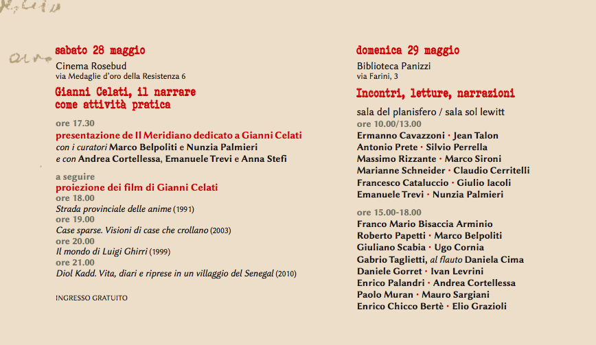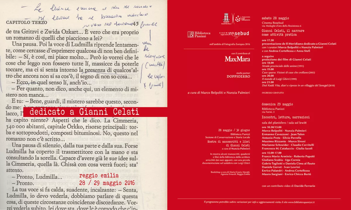 Sabato 28 e domenica 29 maggio due giorni a Reggio Emilia: «Dedicato a Gianni Celati».
