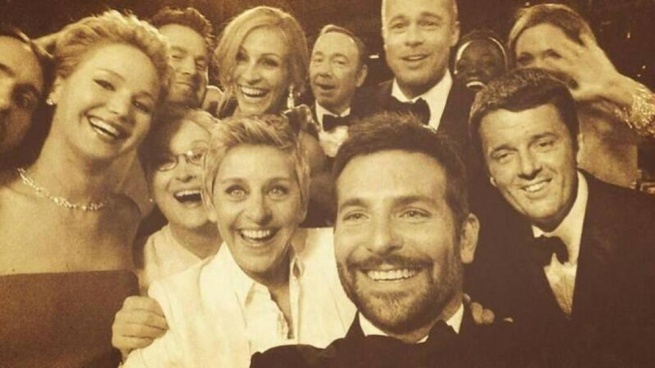 Fotomontaggio ironico di Renzi infiltrato al selfie della cerimonia degli Oscar. Immagine presa da Corriere.it