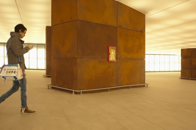 Di contro lì a Expo, a Rho Fiera Expo c’era una calma pazzesca. Già sulla linea del metrò nessuna ressa e carrozze affollate. Sul posto si percepiva un’aria di eccitazione da primo giorno di scuola. E devo dire che rispetto la prima volta che andai, a febbraio, tutto è un’altra cosa. Spazi immensi, a colpo d’occhio ben rifiniti, ancora non affollati. Presenza massiccia di forze dell’ordine, protezione civile, volontari, graduati dell’ATM che più di una volta mi hanno invitato a non fotografare. Stewards, hostess e addetti all’ordine per far passare le persone col biglietto attraverso i metal-detector.