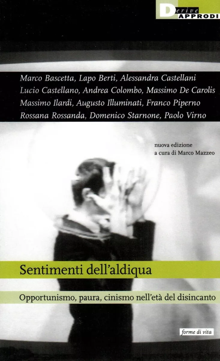 Non è semplice ricostruire la storia editoriale di un libro come I sentimenti dell’aldiqua. Opportunismo, paura, cinismo nell’età del disincanto ora riproposto da Deriveapprodi. Il nucleo di partenza fu un ciclo di seminari del 1987, che riunì persone di diversa formazione culturale, inclini a coltivare interessi molteplici: filosofia, politica, arti visive, scrittura creativa, architettura, giornalismo, informatica, ecologia, cinema, oltre alle cosiddette “scienze dure”. L’obiettivo comune era riflettere sul tempo presente e cogliere i tratti caratterizzanti delle trasformazioni in corso. I primi risultati del dibattito confluirono in un inserto del “Manifesto” nel marzo del 1988, e nel settembre dello stesso anno si tenne un convegno alla Casa della Cultura di Milano per mettere a punto i metodi di indagine, rielaborare i materiali prodotti e tracciare un bilancio parziale. Nel 1990 i testi – firmati da Giorgio Agamben, Marco Bascetta, Lapo Berti, Alessandra Castellani, Lucio Castellano, Andrea Colombo, Massimo De Carolis, Massimo Ilardi, Augusto Illuminati, Franco Piperno, Rossana Rossanda, Domenico Starnone, Paolo Virno – furono pubblicati dalla casa editrice romana Theoria e riuscirono a suscitare interesse nei lettori, fino a raggiungere il primo posto assoluto nelle classifiche di vendita. È quasi superfluo sottolineare come un risultato del genere fosse, allora come oggi, del tutto insolito per una raccolta di saggi.