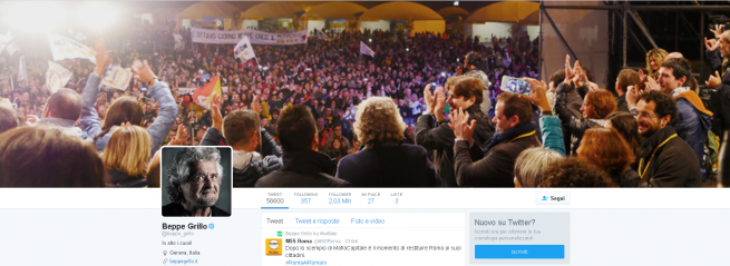 Il fil rouge empireo si ritrova anche nella bio di Beppe Grillo con “In alto i cuori”, dal latino “sursum corda”, una locuzione che ha radici ecclesiastiche, e viene tutt'oggi declamata all'inizio del Prefazio, la prima parte della preghiera eucaristica della messa cattolica. In gergo significa su col morale, espressione che userebbe un padre per confortare i figli, ruolo che Grillo sembra voler ricoprire con i suoi seguaci, anche se Mario Bordin, in un suo pezzo del 2013 su Il foglio, ha ricollegato il motto all'inno delle camicie brune. Rimanendo nel campo della retorica del pater familias, un ulteriore spunto d'analisi proviene dalla copertina, che vede in primo piano una folla adulante di pentastellati, mentre Grillo e gli altri esponenti del partito-non-partito sono ripresi di spalle, intenti ad applaudirli. Se triangoliamo questa immagine, “in alto i cuori” e la risposta dell'assemblea “sono rivolti al Signore”, l'equazione è presto fatta: Grillo sta ai suoi seguaci come il buon pastore alle sue pecorelle. Fedez come Grillo continua con l'accoppiata sostenitori più foto personale, per dimostrare che loro sono la gente e la gente è loro, in tutti i sensi.