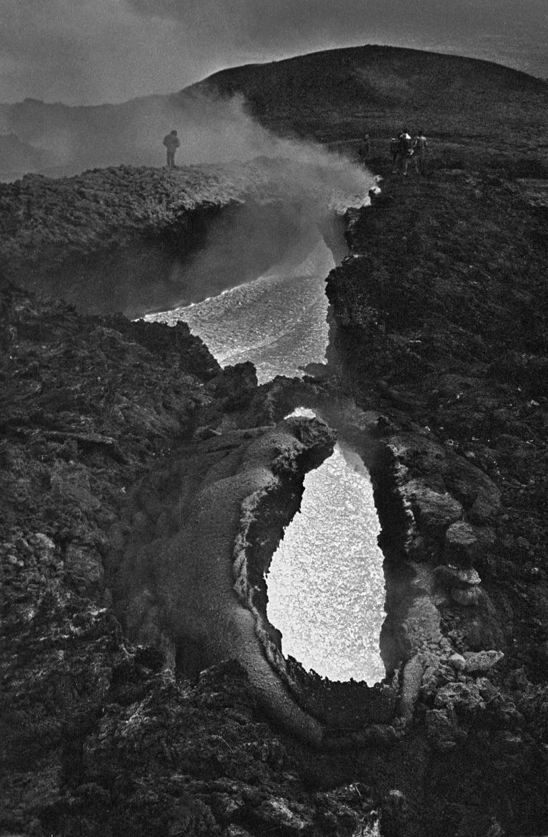 Con più violenza, invece, la terra si apre sull'Etna (1983), lasciando lacrimare il magma caldo, che brilla e fuma, tra le fenditure dei versanti; si dice che il fuoco cicatrizzi le ferite.