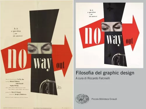 A sinistra: Paul Rand, manifesto del film No Way Out, 1950. A destra copertina del libro di Riccardo Falcinelli.