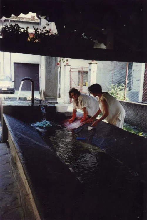 Io e la Cate stavamo lavando i tappetini della macchina al lavatoio di Carolo e di colpo mi son sentita trasportare nel passato. Come altre donne nei secoli dei secoli insaponavamo, sfregavamo, risciacquavamo, le braccia immerse nell'acqua gelida di montagna, avvolte dalla sua musica scrosciante, forte, continua.