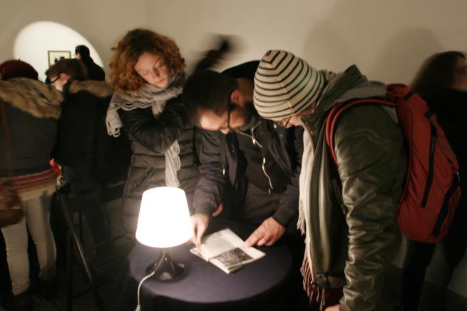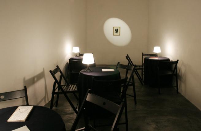 Dall'immagine al codice una linea diretta corre dall'infanzia a oggi, nelle tre opere esposte in mostra. La fotografia vintage che ritrae Vaccari bambino con la madre, in un'ambientazione modificata da lui stesso vent'anni fa, cancellando i volti delle altre persone ritratte; l'autoritratto in QR code, mosaico di informazioni digitali leggibile solo attraverso tablet o smartphone; la terza versione del Bar Code – Code Bar, una serie di tavolini da bar, illuminati da piccole abat-jour su cui si possono leggere i libri dell'artista. Il primo rilievo che si percepisce è lo slittamento funzionale del luogo, che diventa uno spazio di lettura e condivisione praticabile in termini attivi. Vaccari non resiste all'idea di coinvolgere lo spettatore. Di fatto però l'artista non parla di sé e del mondo? Delle nuove forme di comunicare e costruire immagini?