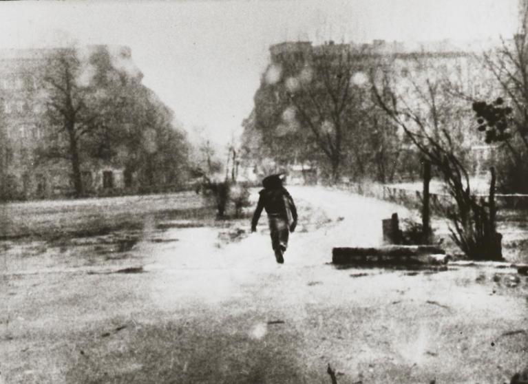 Nel 1976, Ulay incontra Marina Abramović. Amore a prima vista che presto si trasforma in un connubio simbiotico. Decidono di collaborare, ma prima di iniziare ognuno porta a termine un lavoro individuale. In dicembre Marina è invitata a Berlino per una serie di performances, intitolata Freeing the Body. Ulay la segue a Berlino per fotografarla. Una volta lì, pianifica una propria action. L’idea nasce visitando la Neue Nationalgalerie dove si imbatte nel celebre quadro di Carl Spitzweg, Der arme Poet (Il povero poeta). Artista figurativo romantico dell’epoca Biedermeier, Spitzweg era il pittore preferito di Hitler. Non solo, ma a chiunque abbia frequentato la scuola in Germania, Der arme poet, veniva propinato come “il quadro tedesco dell’800”, in modo non diverso da come nella scuola italiana si presenta I Promessi Sposi.  In quel quadro Ulay individua quello che cercava per un’azione politico/artistica.