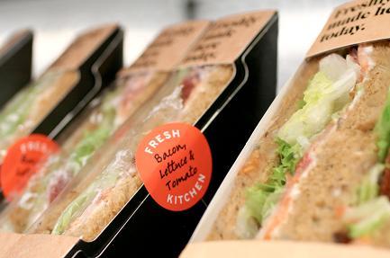 Sono sul treno che mi porta da Lancaster a Londra. È ora di pranzo e la signora di fronte a me estrae dalla borsa un paio di tramezzini confezionati in un involucro di cartone, con un ampio tassello di plastica trasparente che, come una finestra, permette di vederne la fattura. La confezione, non sigillata ma chiusa con un semplice adesivo circolare rosso recante il tipo di farcitura, è elegante e minimale. Nessun disegno o simbolo, niente colori sgargianti, solo nero e marrone, di una tonalità che fa pensare al cartone grezzo o riciclato.