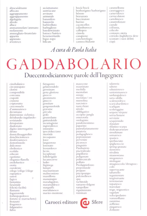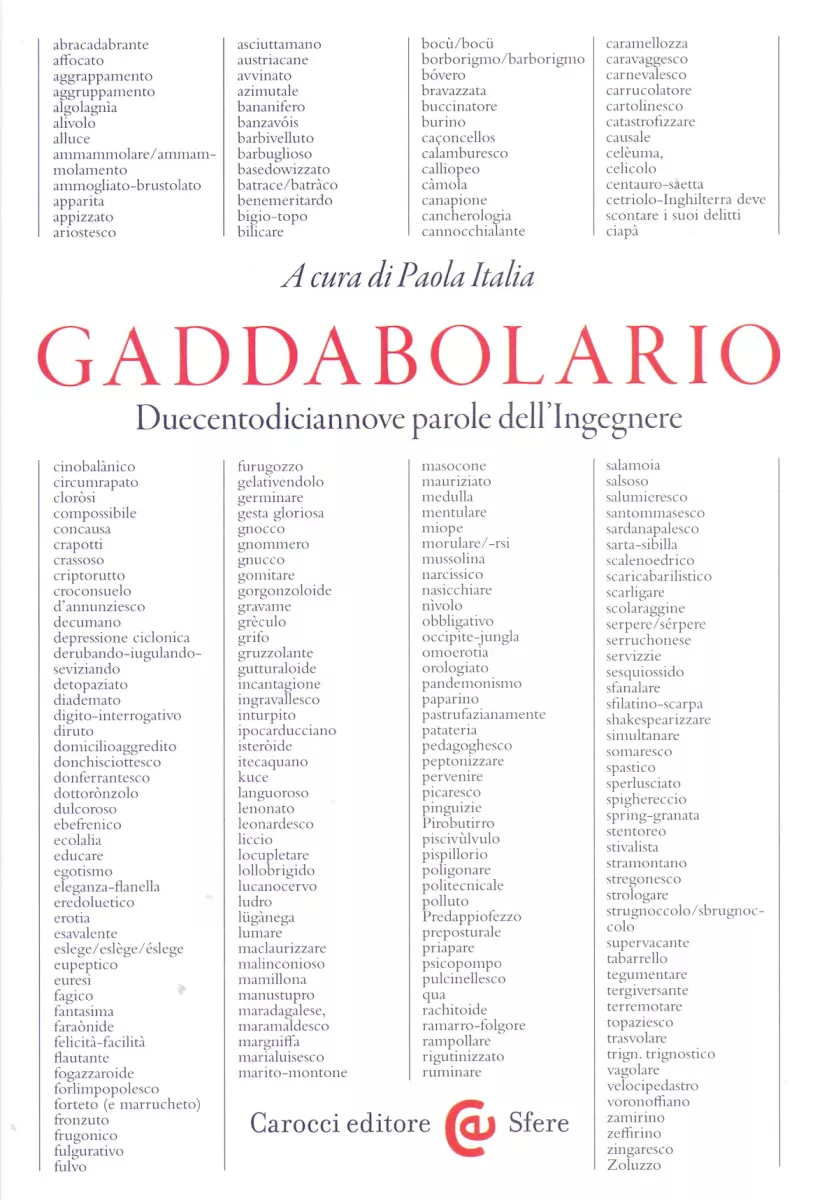 La buona parte dei termini del Gaddabolario è così: detona sia negli aggettivi (barbuglioso, calamburesco, fogazzaroide, gorgonzoloide, ipocarducciano, sardanapalesco) e sia nei sostantivi (canapione, mamillona, pispillorio, strugnoccolo). E tra loro quel dialettalismo ancora una volta milanese, gnommero, affidato al commento di Edoardo Camurri: «il centro di tutta la filosofia della nevrosi gaddiana», ciò che addita il garbuglio inestricabile della realtà; quell’intrico che si consuma al numero civico 219 di via Merulana, un pasticciaccio certamente «brutto» ma narrato con una lingua talmente spettacolare da meritare la formalità sottesa a questo libro arguto: inventariare, in onore di quel civico, un identico numero di parole.