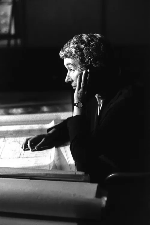 La scrittura di Arbasino chiede attenzione, misura le parole con sottigliezza e spesso ferocia, ma non in questo medaglione in cui traspare tutta la considerazione per la Aulenti, forse temperata da una collaborazione teatrale sul Laborintus II di Luciano Berio per il Festival di Spoleto, mai andata in porto. Da questa intervista, apparsa su Vogue USA nel 1970, si percepisce il tono concentrato, quasi nervoso di questa “signora pallida e bruna, molto seria oppure molto ridente, dalla allure quasi di campagna e dalla mente solidamente da ingegnere (che) appartiene a un’Italia perfettamente nordica.” (id. p. 40) Ricordo bene lo sguardo intenso e ironico con cui Gae Aulenti ti osservava. Poche parole, precise e definite, la sigaretta sempre in mano, la matita vicina e poi intorno una casa che era studio e che tornava a diventare casa grazie a una semplice porta che separava, fragilmente, i due mondi che facevano tutt’uno nella sua esistenza. Il suo era un mondo di forme e spazi, non di parole, sarà la matrice friulana, asciutta, essenziale, severa, “quasi di campagna” che però si fondeva mirabilmente con un’anima metropolitana, mondana e internazionale che ha fatto di lei una delle autrici più anomale e interessanti della scena artistica italiana dagli anni Sessanta a oggi.