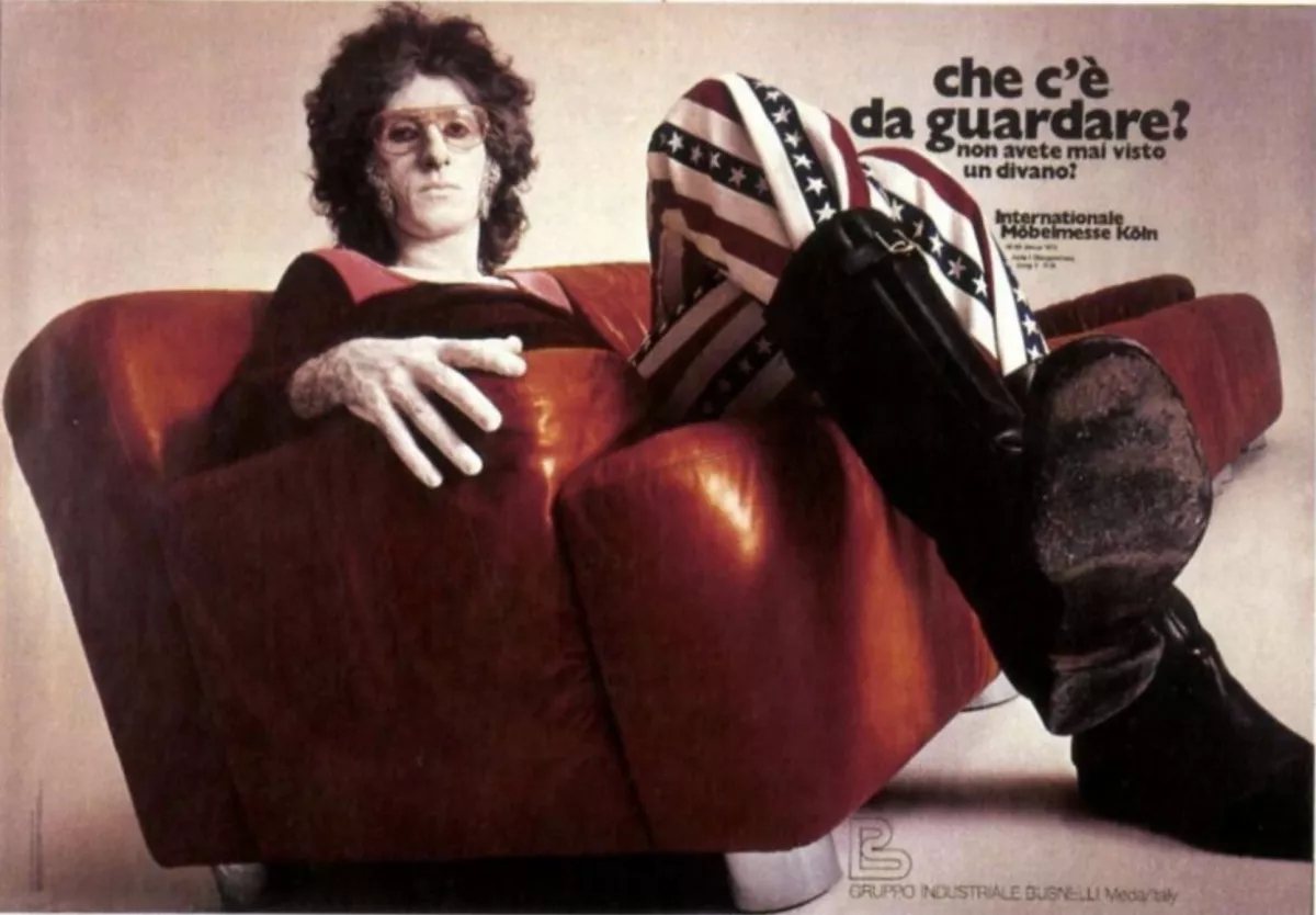 Ma questi sono solo i fatti più noti all’interno di un percorso che inizia nel 1963, quando Sassi fonda a Milano, con Sergio Albergoni, lo studio pubblicitario Al.Sa, e termina nel 1993, quando muore a soli cinquantacinque anni. Fra questi estremi, una serie di progetti uno più straordinario dell’altro: come Pollution (siamo nel 1972), una sorta di happening “per una nuova estetica dell’inquinamento” che consiste nella pavimentazione ‘artistica’ del centro storico di Bologna, in una serie di installazioni e in un concerto-performance di Franco Battiato – lo stesso Battiato che Sassi si può dire abbia inventato, anzitutto spiattellandolo su manifesti pubblicitari sparsi per tutta Milano, truccato da zombie e seduto su un divano Busnelli.