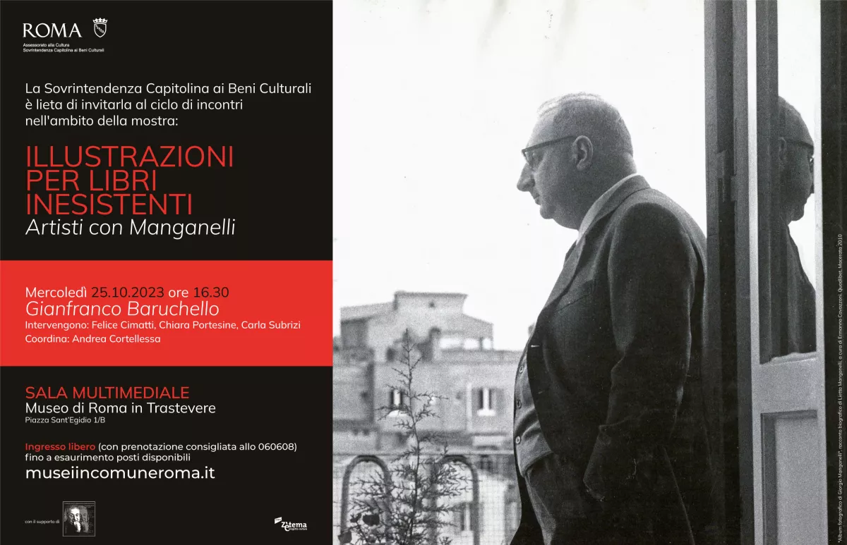 Sono proprio le tavole di Novelli ad aprire la mostra Illustrazioni per libri inesistenti. Artisti con Giorgio Manganelli curata da Andrea Cortellessa e inauguratasi lo scorso 22 settembre al Museo di Roma in Trastevere (22 settembre 2023 – 07 gennaio 2024): scrigno di-segni che, a fianco a Novelli, raduna opere di Achille Perilli, Toti Scialoja, Gianfranco Baruchello, Giosetta Fioroni, Lucio Fontana, Fausto Melotti, Luigi Serafini e Carol Rama a formare un universo di co-possibilità immaginifiche orbitante attorno a Manganelli, l’impossibile. Il titolo della mostra, nonostante e “oltre” le analogie con l’illustre inesistenza di Nuovo commento, è tratto dall’omonimo saggio contenuto in Salons (1987) dove Manganelli scrive che «dunque, il pittore è autore di un libro che sta altrove, un libro che tecnicamente non può scrivere – e di fatti non esiste – ma che, come ipotesi, non potrebbe agire se non fosse inseguito amorosamente dal dipinto che misteriosamente lo illustra […]. È letteratura insistente? Il nulla illustrato?». Passaggio, quest’ultimo, riportato pure in esergo da Cortellessa nel saggio Eterodossie del cuore che apre il catalogo (edito da Electa) della mostra trasteverina. Qui troviamo i preziosi contributi di Chiara Portesine, che con il suo virtuosismo scrittorio volteggia intorno al «gruppuscolo di “linguisti dell’immagine”, impegnati a scoprire (o a inventare) una figurazione alfabetica che tenga ostensivamente insieme disegno e scrittura»; di Paola Bonani, acuta esegeta delle topografie discendenti significate da Novelli per l’infernale Hilarotragoedia e di Maria Grazia Messina, la quale ricuce i fili che legavano le vite di Manganelli, Carol Rama e Lea Vergine.