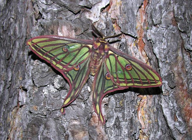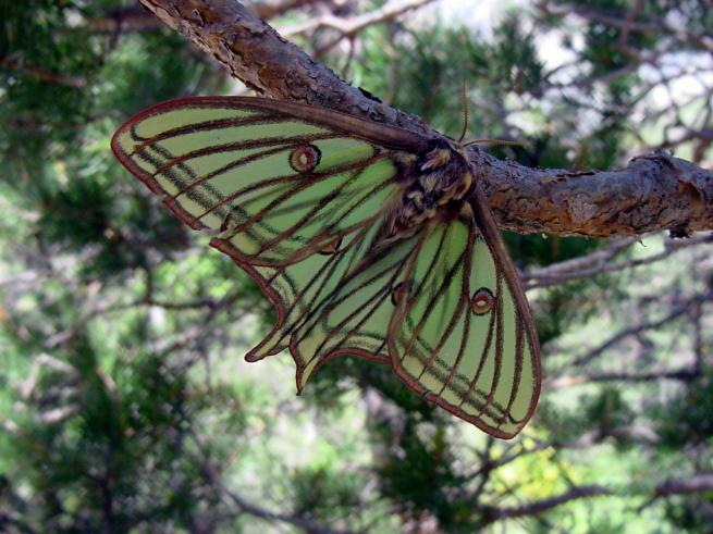 D’improvviso, una enorme falena color verde turchese giunse dalla vallata sottostante volando rasoterra. Fu questione di un attimo, tanto che stento a ricordare cosa avvenne: il tutto si racchiude in qualche decimo di secondo, il tempo necessario per mettere a fuoco l’immagine volante e trasmettere la visione alla parte di cervello che traduce l’immagine stessa in qualcosa di logico e comprensibile. Ma piu’ rapido di tutto fu il colpo di retino che sferzai sull’immagine ancora non razionalizzata. Ovviamente, l’abitudine ad agitare il retino è tale, quando si va in cerca di farfalle e falene, che ben prima che il cervello realizzi che sta accadendo, il riflesso condizionato prevale e permette l’operazione rapida del braccio proteso a colpire con la rete. E tale rete non è che un prolungamento artificiale del braccio stesso con un terminale non-umano, ma rotondo e dotato di tulle o simile per intrappolare l’insetto. Insomma, per farla breve, si trattava di un maschio stupendo e fresco di Isabella che cadde nel retino. La visione della grande falena color turchese che si dibatteva nel tulle era qualcosa di inimmaginabile, tanto che il cuore, da novello Wallace, prese a battere in modo impetuoso confondendo il cervello.