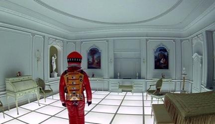 Proprio per il contrasto col buio fuori, quella cellula di miele sfolgorante di luce pare lo spazio fuori dallo spazio, e fuori dal tempo, l’ambiente settecentesco dove perviene il viandante nietzscheano alla fine della sua Odissea, nel 2001 di Stanley Kubrick. Ogni rumore è amplificato dal silenzio, ogni gesto enfatizzato dalla cristallina immobilità del tutto. Unico visitatore, nel bianco lunare mi muovo con circospezione da astronauta.