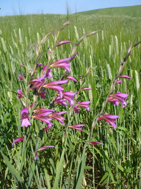 Comunque, nella sua Prefazione Eva Mameli sapeva essere assai più piacevole, puntando sui pregi del fiore: l’ampia gamma e combinazione dei colori; l’eleganza delle spighe florali; la forma «impeccabile»; la durata delle corolle e il lungo periodo della fioritura, specie se si alternano varietà precoci, intermedie e tardive; la facile coltivazione. Insomma, un fiore alla portata di tutti che, con qualche accorgimento rende più ricco il giardino, checché ne dica Pizzetti. Il quale, tuttavia, pur avanzava una buona argomentazione a favore dei selvatici, quali il gladiolo delle messi (Gladiolus segetum) o la spadacciola (Gladiolus communis), assai simili se non per la forma dei semi. Entrambi di origine africana e progenitori dei gladioli moderni, quindi di tutti gli ibridi, portano bei fiori rosa acceso e, interrati in un ampio prato, conferiscono al giardino quell’aria spontanea “all’inglese” sempre di gran fascino.